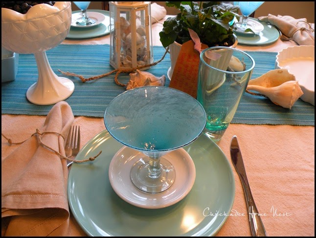 I’m not too late with a beach tablescape, am I? I’m seeing a big shift to fall—blogs, magazines, catalogs—but at the end of August, as our family got together to celebrate July birthdays we hadn’t been able to celebrate, and yours truly’s in August, I just had to have a beach table. I hope those of you who love the beach and its colors will enjoy one more glance at summer…